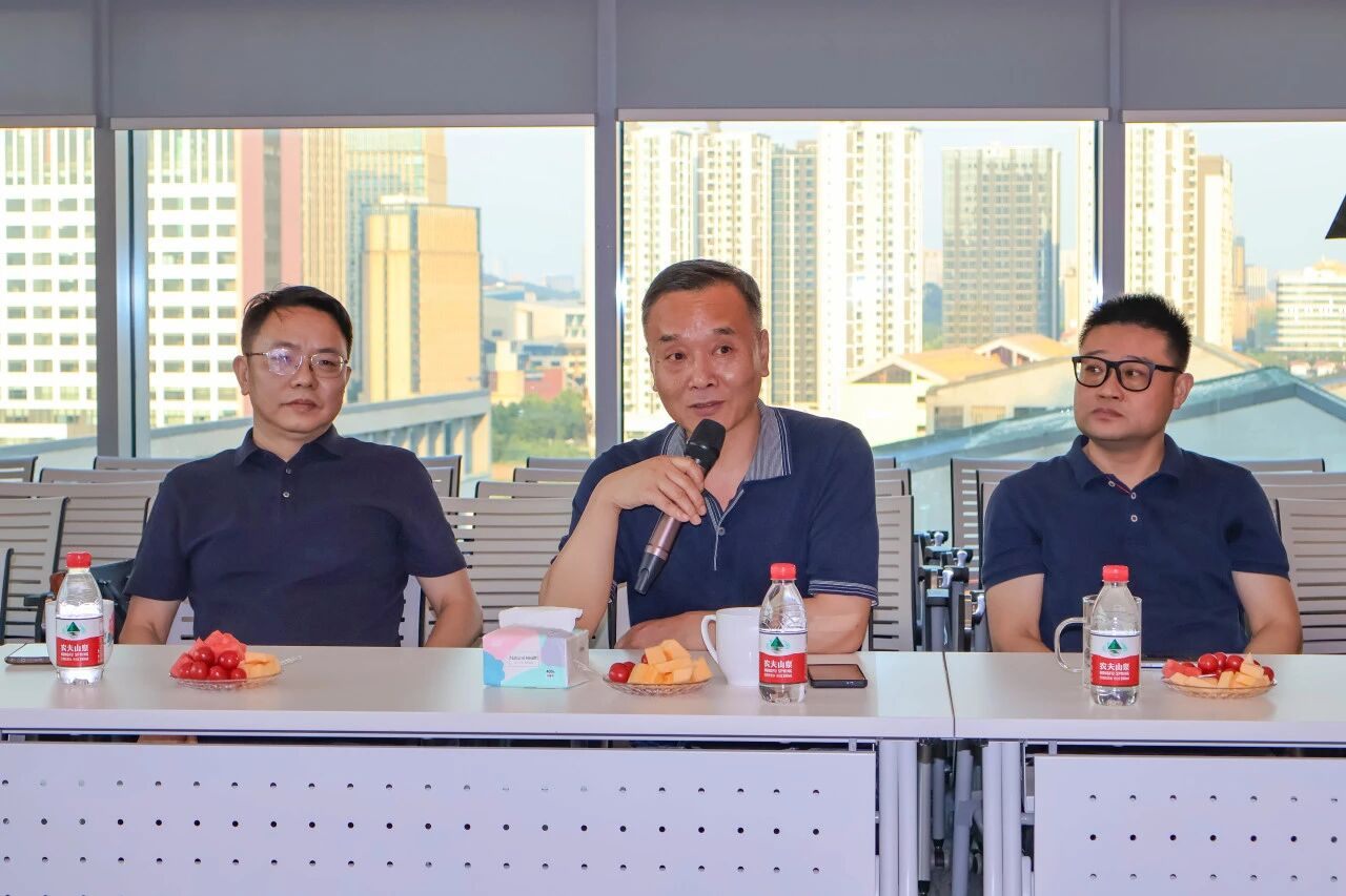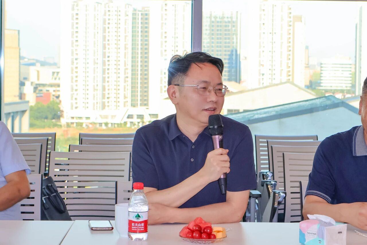 参观完毕后,来宾们落座海龙学院,唐明政首先代表李波董事长对院领导及校友的来访表示热烈欢迎,并以海龙企业文化“以此为生、精于此道”为切入点,向来宾们介绍了李波董事长的创业经历和海龙国际的发展历程;作为从“楠竹山”走出来的优秀学子,李波董事长始终铭记母校的教诲,并积极反哺母校,上半年应邀回母校给学弟学妹做了创业励志分享,后又优先安排母校毕业生就业。李波董事长坚守创业初心久久为功做实业的企业家精神和以实际行动助力母校发展的举措引发了参访团成员的强烈共鸣。