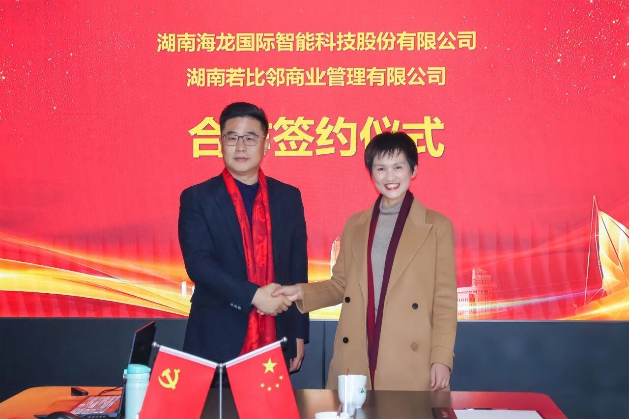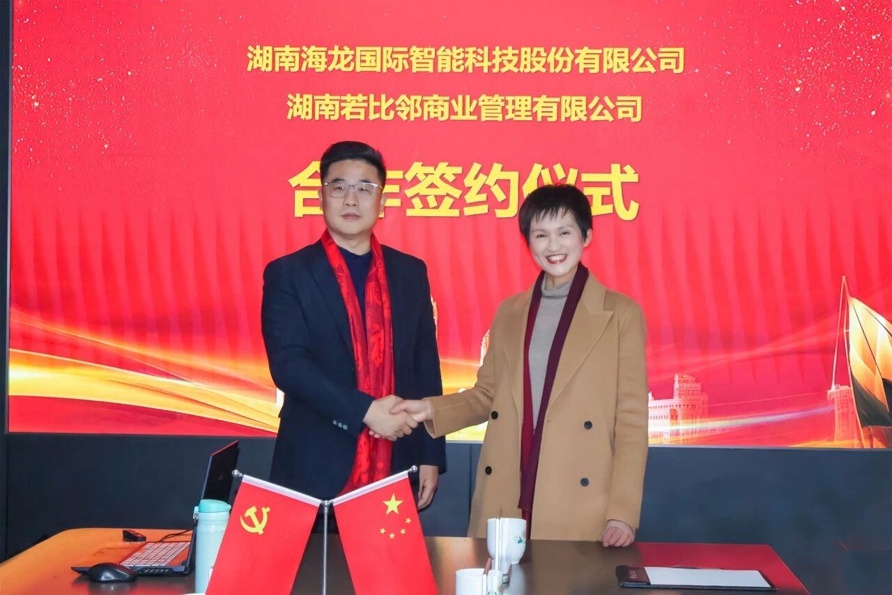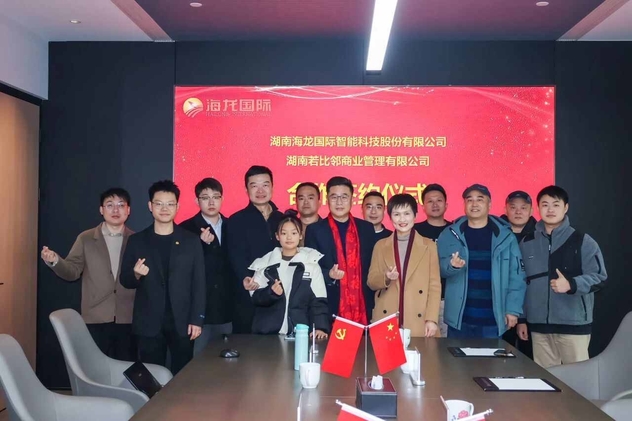 湖南海龙国际智能科技股份有限公司(以下简称“海龙国际”)与湖南若比邻商业管理有限公司(以下简称“若比邻”)在海龙国际9楼会议室举行合作签约仪式。此次战略合作旨在通过双方的优势互补,在智慧社区(园区)的落地运营、区域招商、供应链等领域展开深度合作,共同成立合资公司,致力于打造“谊家”智慧社区(园区)项目,并谋划其全国渠道布局。